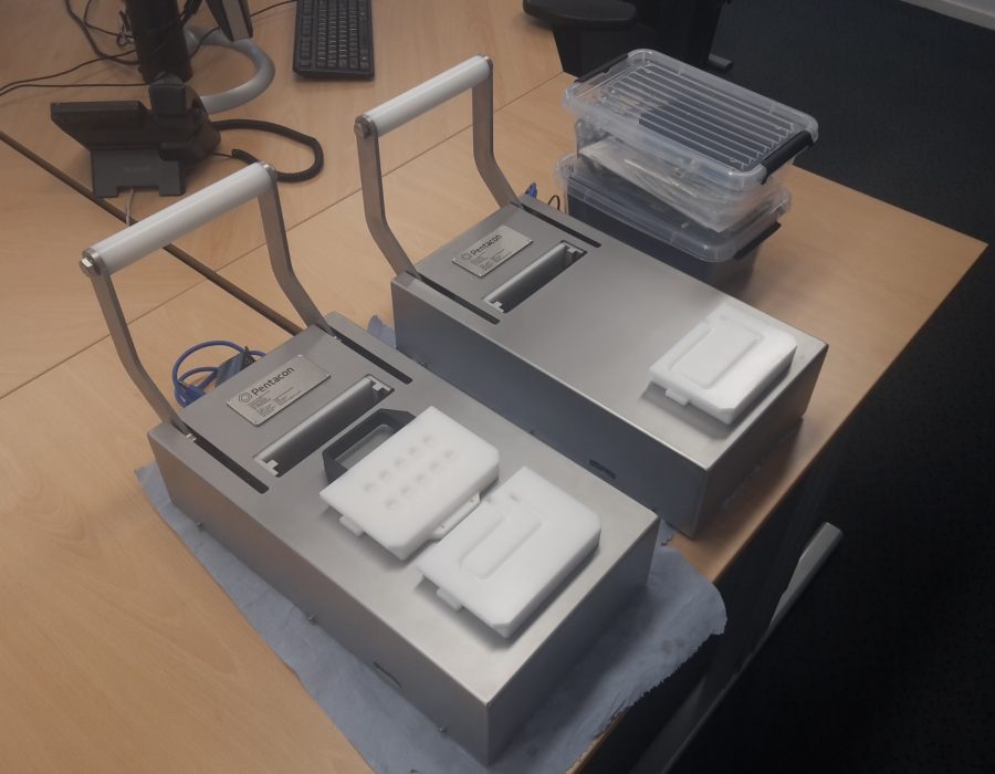 Voor een nieuwe onderzeese grondfundatie is Pentacon gevraagd een testopstelling te ontwerpen. De verhoogde G-krachten in de testruimte brengen extra uitdaging met zich mee wat betekent dat de gehele constructie 5 keer zwaarder wordt. Middels een frame constructie en gelagerde oplegging is gezorgd voor een zwevende ophanging van de fundatiepalen. Verschillende meet instrumenten leggen het gedrag van de fundatie tijdens de test vast.