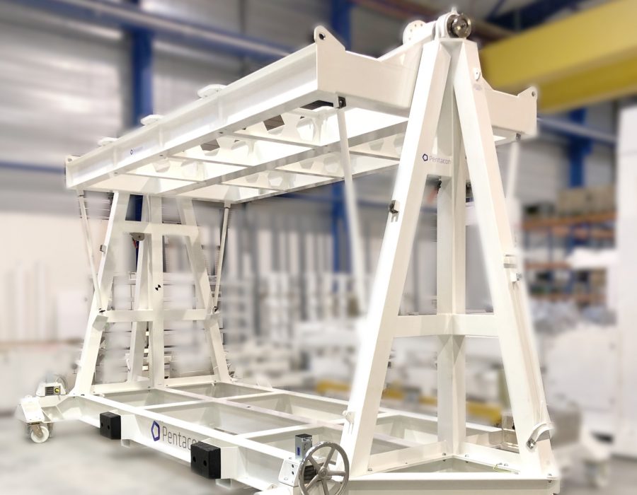 De aerospace design engineers van engineering bureau Pentacon ontworpen test equipment om het openklappen van zonnepanelen op aarde te simuleren. Hiervoor diende een wrijvingsloze geleiding gemaakt te worden waaraan de zonnepanelen hangen en kunnen openslaan zonder dat hier wrijvingsenergie verloren gaat.